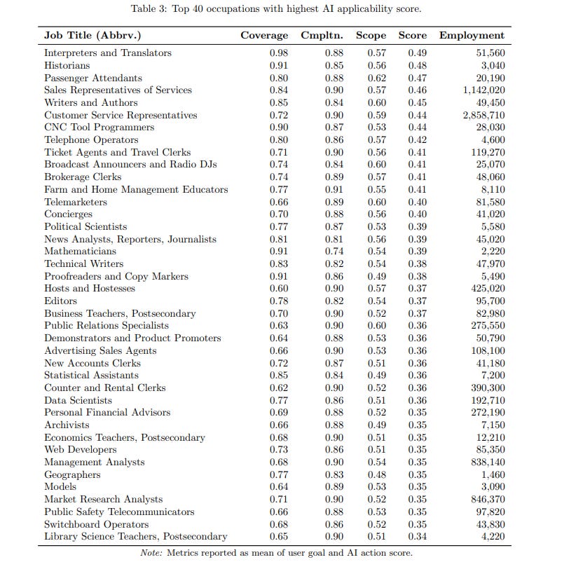 This study connects real-world AI usage to actual job functions, and the roles already undergoing change face the highest exposure. It also highlights a growing divide: jobs requiring physical presence remain largely untouched by AI (at least for now).